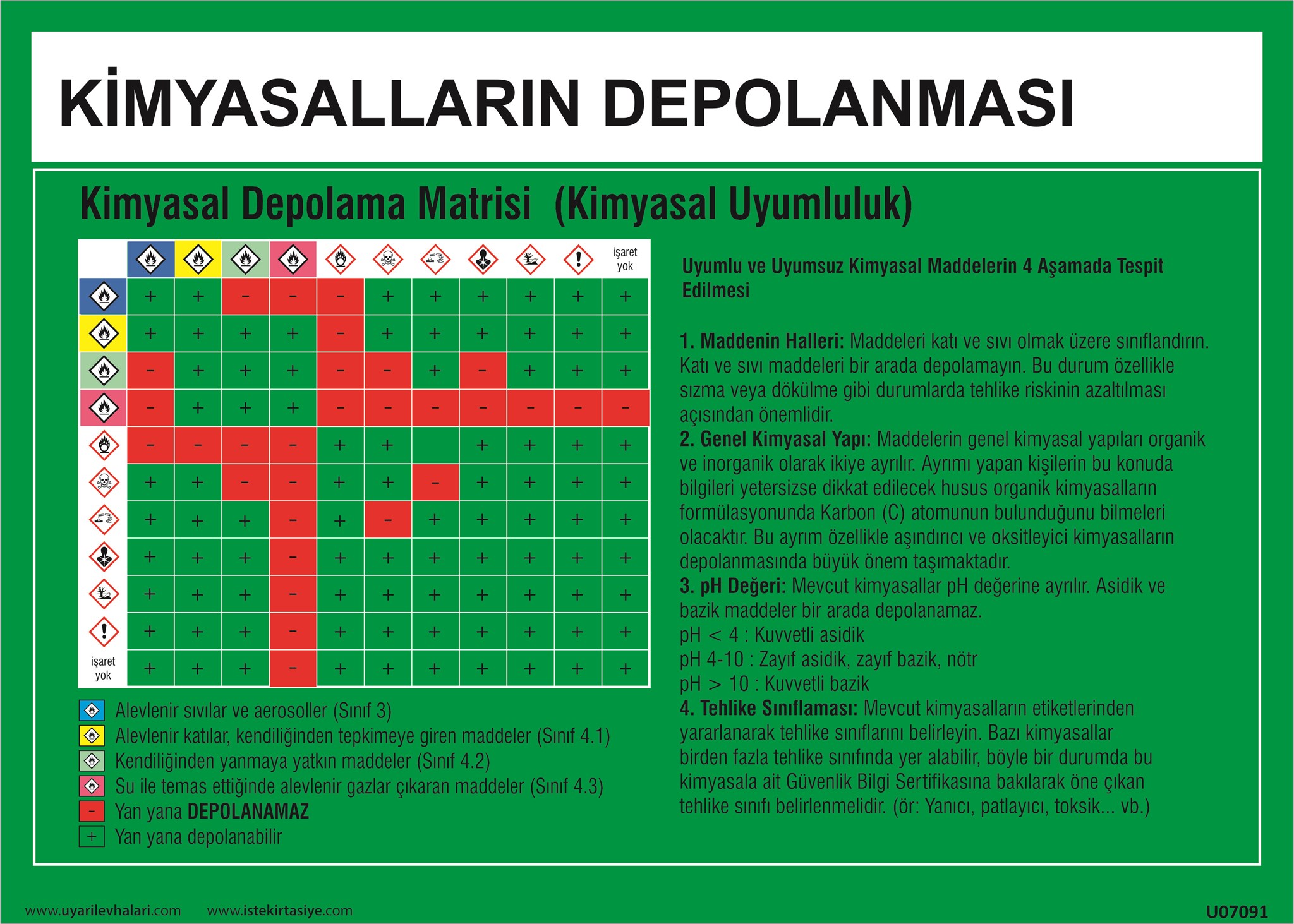 Kimyasalların Depolanması Matrisi Uyarı Levhası